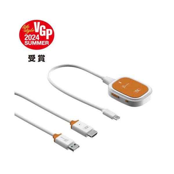 - j5create JVAW61 ScreenCast USB-C Wireless Display ホワイト発売日:2024年8月23日●簡単にUSB-C端末を大画面にミラーリングUSB Type-Cポート搭載のスマートフォン、タブレット、ノートPCの画面を小型の送信機を介して、最大30mワイヤレスでHDMIディスプレイにミラーリングできる受送信機です。iPhone15、iPadに対応。日本TELEC認証取得。※送信機を接続するデバイスのType-CポートはDisplayPort Alt Modeに対応している必要があります。●簡単接続プラグ&プレイ 送信機はUSB-Cケーブル1本で十分受送信機はペアリング済みのため、開封して端末に接続するだけですぐに使用できます。モバイル端末やノートPCのUSB-Cポートから送信機へ給電ができるので、他社品のように充電器を別で用意する必要がありません。ケーブル1本で使用できるため配線もスッキリ。デバイスを離れて持ち歩けるのでポータブル性に優れています。●高解像度フルHD対応最大1920x1080表示解像度に対応しています。●HDCP対応、有料コンテンツでも見られますHDCP1.4に対応しているので、Netflix、Amazon Prime Video、Huluなど 著作権保護されたコンテンツを見ることができます。※ご使用の送信デバイスと受信ディスプレイもHDCPに対応している必要があります。※各種動画サービスは個別で契約が必要です。●無線LANのない環境でも直接使用できる(屋内、車内)ルーター回線の設定は必要なく、自宅にWifiインターネットがない場合でも使用が可能です。※屋外でのご利用はできませんのでご注意ください。●ビジネスでも大活躍パソコンのUSB-Cポートに挿すだけでミラーリングできるので、会議の際も送信機を抜き差しするだけで簡単に投影するパソコンを切り替えできます。ケーブルレスでスマートなミーティングをサポートします。●高安定性5GHzの無線周波数5GHzの周波数を使用することで、他の電子機器の無線干渉を回避し、安定した伝送を実現します。●複製モード・拡張モードノートパソコンの拡張モードにも対応しており、ノートパソコンとディスプレイは異なる画面を表示し、それぞれ違うウィンドウを同時に操作できます。※スマートフォンとタブレットはメーカーによって、一部の機種はミラーリングモードのみをサポートしています。 【仕様】システム要件・注意事項:※送信機TXに接続するデバイスのType-CはDisplayPort Alt Modeに対応している必要があります。端末がDisplayPort Alt Modeに対応しているかについては、端末メーカーにお問い合わせください。※受信機RXに給電する必要があります。テレビのUSBポートに挿すまたは別売5V/1A充電器を使用してください。※HDCPに対応していますが受信ディスプレイと送信デバイスもHDCPに対応している必要があります。※本機を使用する環境のWifi混雑状況によって通信安定性に影響されることがあります。受信機がテレビの裏に設置すると通信がテレビに遮られて通信が影響されることがあるので、受信機をテレビの手前に設置すれば通信クオリティーがよくなる可能です。※送受送信がメーカー出荷時にすでにペアリングしましたが、もしペアリングが解けられて改めてペアリングする場合に、クイックインストールガイド(QIG)をご確認ください。または次のURLでご確認ください。→//www.j5create.com/screencast/index_jp.html※本製品は屋外での利用はできません。屋内や社内は利用可能です。ホスト(パソコンと接続側):送信機TX USB-C(オス)/受信機RX:HDMI(オス)、USB-A給電端子(オス)性能:Wi-Fi規格 IEEE 802.11n通信距離:約30メートル(無障害物の環境)HDCP:HDCP 1.4消耗電力:5V 500mA給電方式(送信機/受信機):バスパワー(端末から給電されるので別途で電源を用意不要です)/セルフパワー(5V1A以上のUSBポートやUSB充電器に挿して使用してください)最大解像度:1920×1080 @60Hz、1280×720 @60Hz材質:プラスチック外形寸法(W×H×D)mm:45×30×12(ストラップを含まず)重量(g):約14.5パッケージサイズ(W×H×D)mm:送信機69.2×56.11×16mm/ケーブル長10cm/受信機:18.89×37.1×9.45mm/ケーブル長60cm重量(送信機/受信機):約46.5g/約24.5gパッケージ内容:送信機TX、受信機RX、60cm USB Type-A延長ケーブル、クイックインストール、保証書保証期間:2年