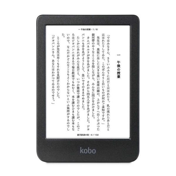 - 【商品解説】●安心の防水機能も搭載水没しても安心の「IPX8*」規格に準拠。お風呂やキッチンでも安心してご使用いただけます。*水中での長時間利用は前提としておりません。あくまでも生活防水とご認識ください。●16GBの内蔵メモリ16GBメモリを搭載し、小説なら約12,400冊分、コミックなら約248冊*の本を持ち歩くことができます。*一般的なテキストベースの本1冊分のファイルサイズを1MB、コミック 1 冊分のファイルサイズを50MBで計算した理論値です。【スペック】●型式:N365-KJ-BK-S-EP(N365KJBKSEP)●JANコード:4560470103787本体サイズ(幅×高さ×厚さ)mm:160mm×112mm×9.15mm本体重量:174gディスプレイ:1448x1072、白黒300ppiディスプレイサイズ:6インチメモリー(ROM):16GBインターフェイス:Type-C無線:Wi-Fi ac/n/a/g/bバッテリー駆動時間:数週間防水:防水付属品:USB Type-Cケーブル仕様1:防水:IPX8規格準拠 (水深2m/最大60分耐久)仕様2:ライト:ComfortLight PRO (フロントライト内蔵、ナチュラルライト機能)【注意事項・特記事項】≪電子書籍KOBOは初期不良含めてメーカーサポートとなります≫ご購入後の初期不良、修理のご相談は楽天koboカスタマーケアセンターにご相談ください。楽天koboカスタマーケアセンター電話:0120-228-442受付時間: 9:00〜17:00 年中無休この商品は宅配便でお届けする商品です出荷可能日から最短日時でお届けします。※出荷完了次第メールをお送りします。配送サービス提供エリアを調べることができます「エリア検索」をクリックして、表示された画面にお届け先の郵便番号7桁を入力してください。ご購入可能エリア検索お買い上げ合計3,980円以上で送料無料となります。※3,980円未満の場合は、一律550円(税込)となります。●出荷可能日から最短日時でお届けします。(日時指定は出来ません。) ※お届け時に不在だった場合は、「ご不在連絡票」が投函されます。 「ご不在連絡票」に記載された宅配業者の連絡先へ、再配達のご依頼をお願いいたします。●お届けは玄関先までとなります。●宅配便でお届けする商品をご購入の場合、不用品リサイクル回収はお受けしておりません。●全て揃い次第の出荷となりますので、2種類以上、または2個以上でのご注文の場合、出荷が遅れる場合があります。詳細はこちら■商品のお届けについて商品の到着日については、出荷完了メール内のリンク(宅配業者お荷物お問い合わせサービス)にてご確認ください。詳しいお届け目安を確認する1度の注文で複数の配送先にお届けすることは出来ません。※注文時に「複数の送付先に送る」で2箇所以上への配送先を設定した場合、すべてキャンセルとさせていただきます。
