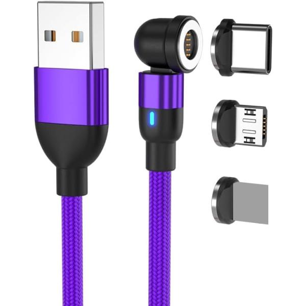 マグネット 充電ケーブル 5ピン 18W B充電ケーブル データ転送 540°回転 3in1 Bケーブル 片手操作 タイプc マイクロb ype