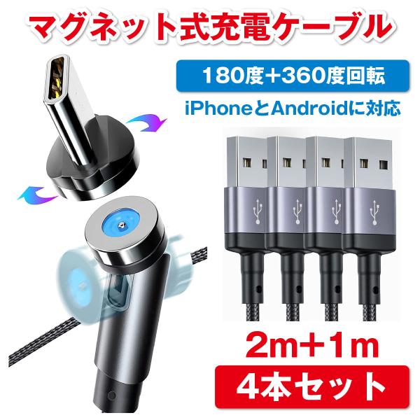 3in1 充電ケーブル マグネット タイプc iphone スマホ充電ケーブル マグネット式充電ケーブル usb 2m 1m 4本 セット