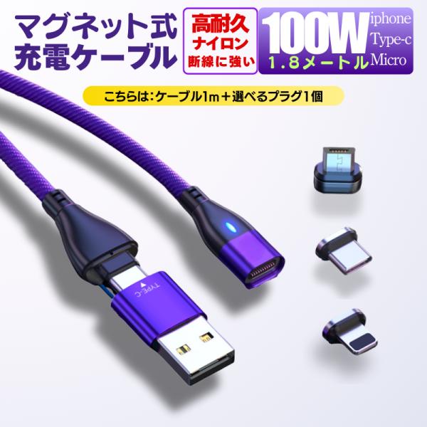 爆買 充電ケーブル iphone マグネット 式タイプc PD 100w 18w 1.8m 1本 選べる プラグ 1個 type-c lightning micro 急速充電 11pin タイプc ライトニング