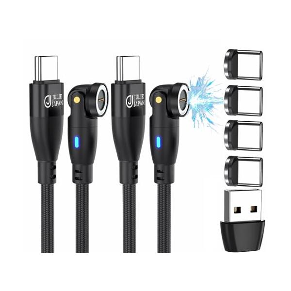 JJ JULIE JAPAN マグネット充電ケーブル PD対応 9PIN 60W 1m USBケーブル 2本セット Type-C端子 4個入り