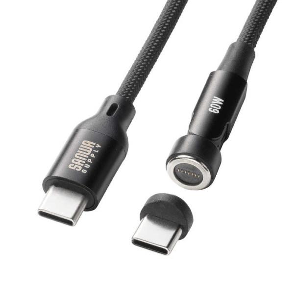 サンワサプライ USB2.0 Type-Cケーブル(マグネットコネクタ・540度回転・PD60W・1m) KU-CCP60MG10BK