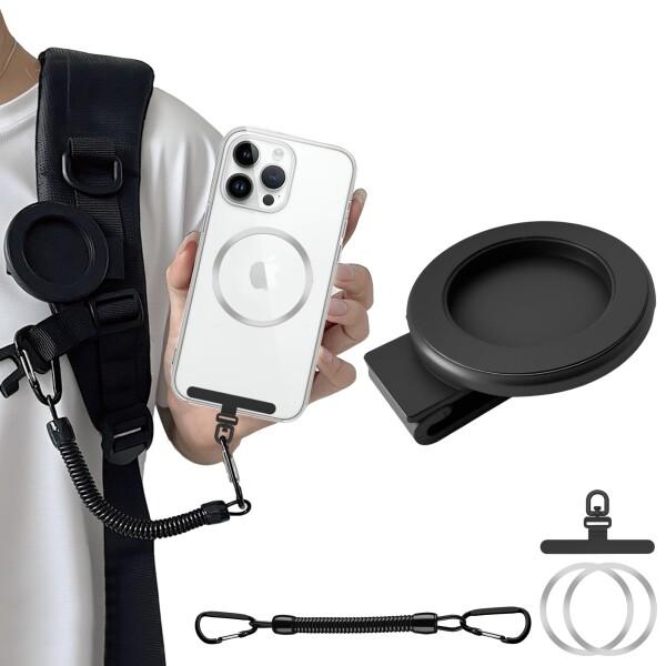 Kakuki MagSafe クリップ 強力なマグネット アウトドア 旅行 登山 ストラップ付き マグフィット・クリップ 盗難防止 携帯電話ベルトクリップホルダー (ブラック)