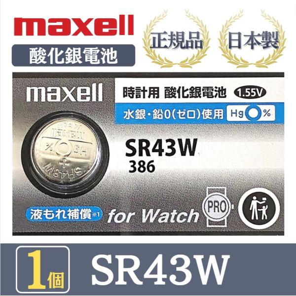 【最新型】日立 maxell マクセル 正規品 日本製 SR43W 386 酸化銀電池 ボタン電池 電池 時計 腕時計 鉛不使用 高品質 国産 送料無料 1個