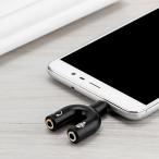 イヤホン U型スプリッタアダプタ 《ブラック》 ヘッドフォン スピーカー 分割 分配 変換アダプター(定形外郵便、送料別商品)