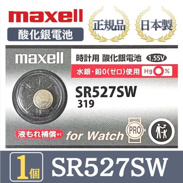 【最新型】日立 maxell マクセル 正規品 日本製 SR527SW 319 酸化銀電池 ボタン電池 電池 時計 腕時計 水銀・鉛不使用 高品質 国産 送料無料 1個