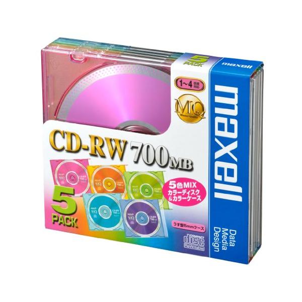 maxell データ用 CD-RW 700MB 4倍速対応 カラーミックス 5枚 5mmケース入 CDRW80MIX.1P5S