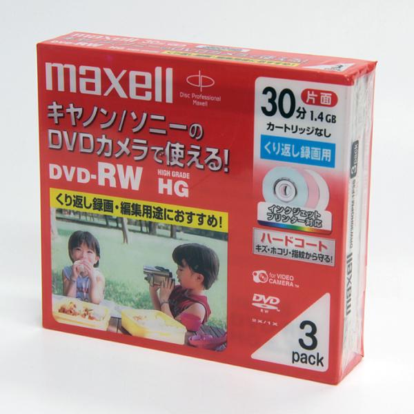 【デッドストック品】録画用 DVD-RW 3枚入 30分/1.4GB くり返し録画用 カートリッジなし キャノン/ソニーのDVDカメラ用 マクセル maxell DRW30HGPM.1P3S