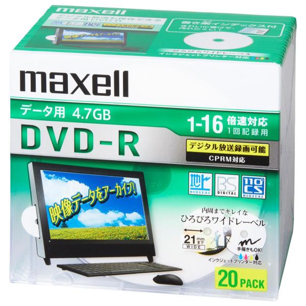 マクセル データ用16倍速対応DVD-R 20枚パック CPRM対応 4.7GB ホワイトプリンタブル maxell DRD47WPD.20S 返品種別A