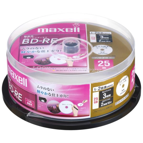maxell 録画用 BD-RE 25GB 2倍速対応 プリンタブル ホワイト ひろびろ超美白レー
