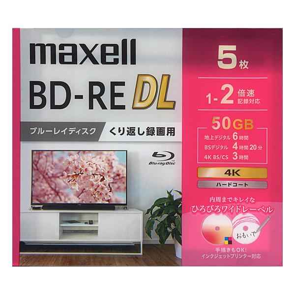 maxell 録画用ブルーレイディスク BEV50WPG.5S BD-RE DL 2倍速 5枚組 [管理:1000025161]