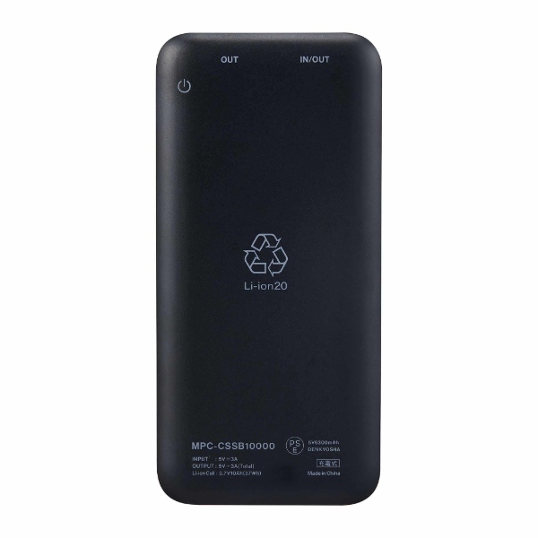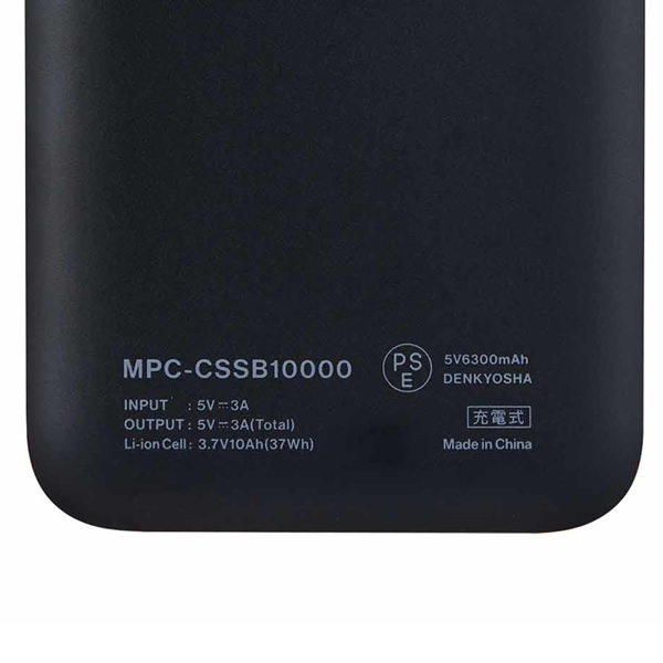 - ■ Maxell(マクセル) ■半固体電池採用により安全性向上と長寿命を実現●大容量10,000mAh●くり返し充電回数 約2,000回*1の長寿命電池●釘刺し試験で安全性を確認*2●複数の保護機能を搭載●全数検査による徹底した品質管理●安全性試験規格に適合●厳格な社内試験も実施*1マクセル試験結果に基づく目安。*2本試験結果は参考であり、保証するものではありません。◆ 主な特長 ◆■半固体電池採用により安全性向上固体電解質と液体電解質を組み合わせた半固体電池を採用により、使い方を誤ると発熱・発火の原因となりうる電解液の量を従来製品*1と比較して約50%削減しています。■くり返し充電回数 約2,000回*2の長寿命電池従来製品*3と比較して、約2倍の充放電ができる長寿命を実現しました。充放電サイクルを重ねても一定の容量を維持するため、長期間使用できます。■釘刺し試験で安全性を確認専門機関による釘刺し試験を実施し、所定の試験条件下において、発煙・発火などの現象が発生しないことを確認しています。※本試験結果は参考であり、保証するものではありません。※この試験は専門機関で管理された環境下で実施した安全評価です。重大な事故につながる危険性があるため、絶対に真似をしないでください。■複数の保護機能を搭載温度保護、過電流保護、過充電電圧保護、過放電電圧保護を搭載。■全数検査による徹底した品質管理安全性試験規格に適合電気用品安全法(PSE)技術基準、国連勧告輸送試験UN38.3に適合しています。■厳格な社内試験も実施コネクターの耐久性試験、塩水水没試験、耐荷重試験など、自社基準による各種試験をクリアしています。*1 メーカー従来のリチウムイオン電池搭載製品との比較試験結果に基づく目安。*2 メーカー試験結果に基づく目安。*3 従来製品:アーチ型モバイル充電バッテリー MPC-C6601 6600mAh。◆ 主な仕様 ◆■型番MPC-CSSB10000■外形寸法幅68mm×高さ143mm×厚み16.5mm■入力・出力端子入出力端子:Type-C、出力端子:USB-A■入力電圧/電流DC5V/最大3A■出力電圧/電流DC5V/最大3A(2口合計)Type-C DC5V/最大3AUSB-A DC5V/最大3A■本体質量約230g■充電時間約3時間(0→80%)、約5時間(0→100%)*1ただし、出力DC5V/3A以上のACアダプターを使用した場合■同梱品充電用ケーブル(Type-C-Type-C 約20cm)×1本*2、取扱説明書(保証書付)*1 マクセル試験結果に基づく目安です。*2 充電専用です。本製品は電気用品安全法に基づくPSE適合品です。PSマークの種類:PSE届出事業者名:DENKYOSHA簡易商品仕様ブランド名:Maxell|マクセルメーカー型番:MPC-CSSB10000BK代表カラー:ブラックUSB:有USB Type-C:有USBポート数:2バッテリー容量:10000mAh