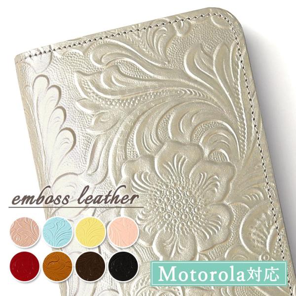 Moto G6 Play ケース 手帳型 おしゃれ ブランド 本革 エンボスレザー スマホケース 全機種対応 android モトローラ g6 カバー 花柄 simフリー 日本製 カード収納