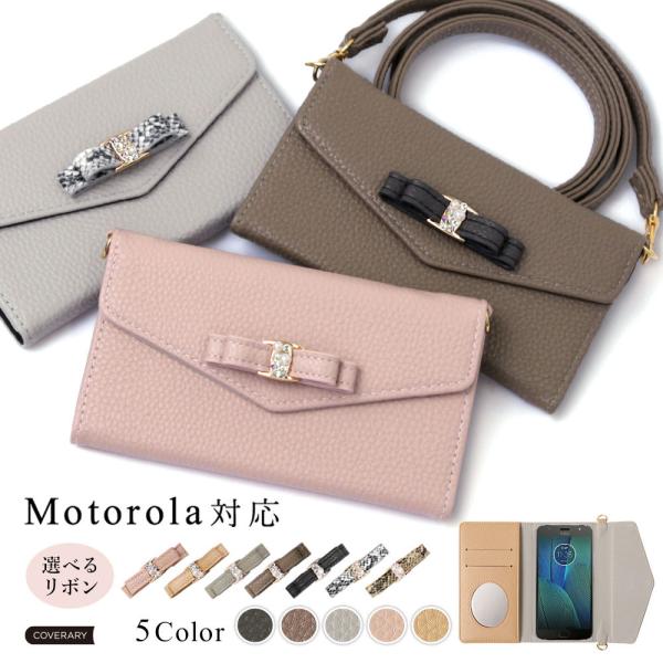 Moto G6 Play ケース 手帳型 ショルダー おしゃれ ミラー付き ブランド スマホケース 全機種対応 android リボン モトローラ motorola g6 simフリー カバー