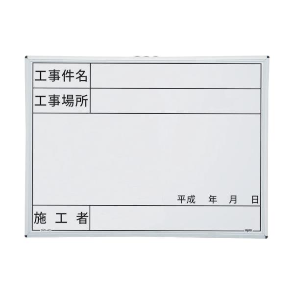 - 【仕様】 型式:SW-40 項目:工事件名・工事場所・年月日・施工者 サイズ:450mm×600mm 【付属品】 マーカー(黒)1本、マグネット付ラーフル(サイズ:115×55×20mm)