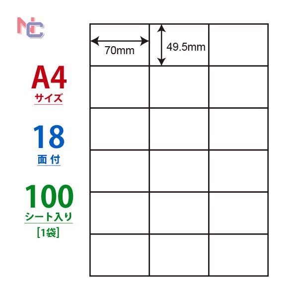 C18P(L) ラベルシール 1袋 100シート A4 18面 70×49.5mm マルチタイプ 表示ラベル 東洋印刷 ナナコピー C18P
