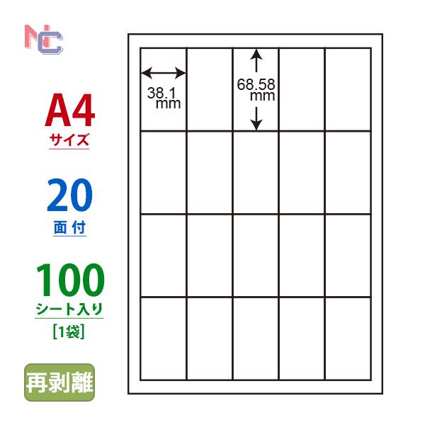 CD20SF(L) 再剥離ラベルシール 1袋 100シート A4 20面 38.1×68.58mm 剥がせる マルチラベル 表示ラベル 印刷ラベル ナナラベル CD20SF
