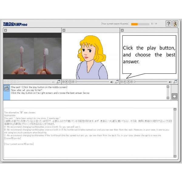 歯科衛生士が、患者と英語でコミュニケーションしなければならない様々な場面について、疑似体験し学習することができます。