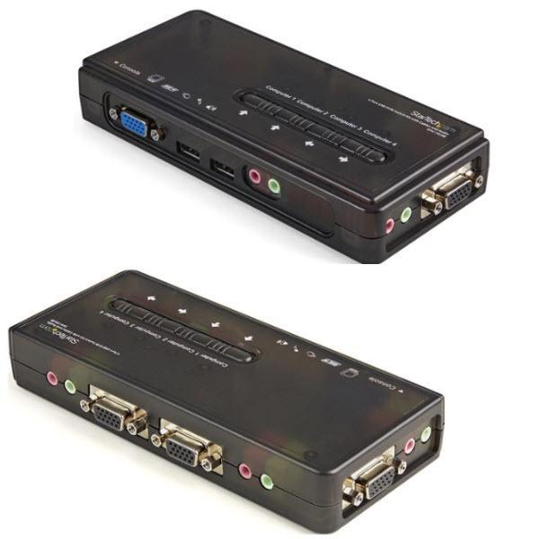 - ■仕様4ポートUSB KVMスイッチキット(音声対応、ケーブル付属)。キーボード、マウス、VGAモニタのワンセットでUSB対応コンピューターを4台まで制御することができます。ホットキーとトップパネルプッシュボタンにより、接続したコンピューター間を簡単に切り替えることができます。 場所を取らないコンパクトな設計(トランプサイズの長方体)なので狭いスペースにもすっきり収まり、接続先のパソコンから給電するため外付け電源は不要です。 最大2048 x 1536までのビデオ解像度とオーディオスイッチをサポートしており、さまざまな用途に適しています。2-in-1 VGAケーブルとUSBホストケーブルが2本づつ同梱されており、購入後すぐに使用できるKVMソリューションです。 単一の周辺機器ステーションで複数のコンピューターを制御する本KVMスイッチには、StarTech.comの2年間保証と無期限無料技術サポートが付いています。■商品状態新品■保証メーカー保証※こちらの商品は初期不良の場合も含めてメーカー直接サポートのみとなります。サポートを受ける際はメーカーサポート窓口までご連絡ください。■備考本製品仕様はメーカーページを参照した内容となります。製品仕様詳細についてはメーカーホームページをご参照ください。他サイトでも併売しているため、万が一、在庫完売時はご連絡の上、ご注文のキャンセル処理を手続きさせていただきます。他サイトでも併売しているため、万が一、在庫完売時はご連絡の上、ご注文のキャンセル処理を手続きさせていただきます。