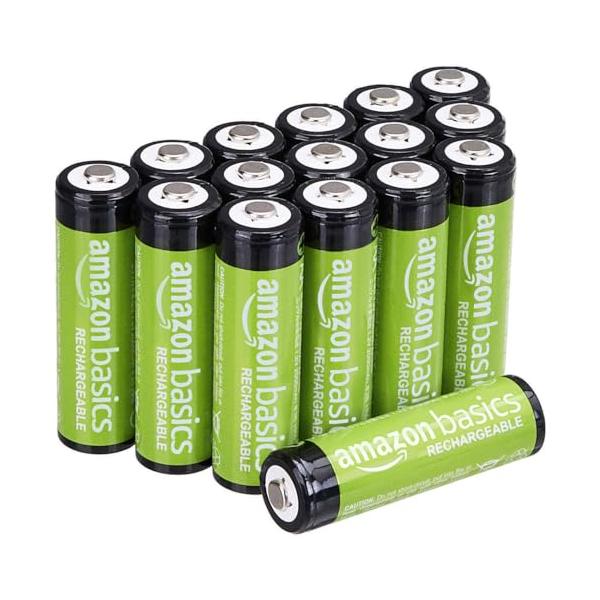 ベーシック 16個入り充電式単3形ニッケル水素電池、2000mAh、1.2V、最大1000倍まで充電、プリチャージ済み