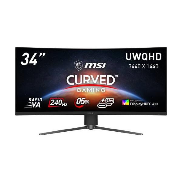 - MSI エムエスアイ 1500R 湾曲モニター ▼駆動方式:Rapid VA 型 ▼表面処理:ノングレア(反射防止) ▼液晶パネルサイズ:34型 ▼湾曲率:R1500 ▼最大解像度:3440×1440 ▼最大リフレッシュレート:240Hz ▼HDR:DisplayHDR 400 ▼応答速度(GTG):0.5ms ▼HDMI端子:2 ▼DisplayPort:1 ▼USB TypeC 映像入力:1 ▼USB TypeC 給電:98W ▼KVMスイッチ:○ ▼VESAマウント対応:100mm ×100mm ▼ピボット対応:×