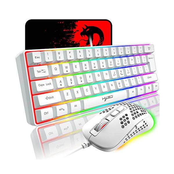 ゲーミングキーボード マウス 有線 61キー 小型 60%レイアウト 11LEDバックライト 2400DPI マウスパッド付き オフィス/ゲーミ