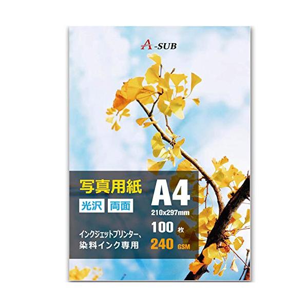 A-SUB インクジェット写真用紙 両面印刷 光沢紙 超きれい 0.3mm厚手 A4 100枚 インクジェットプリンター用紙
