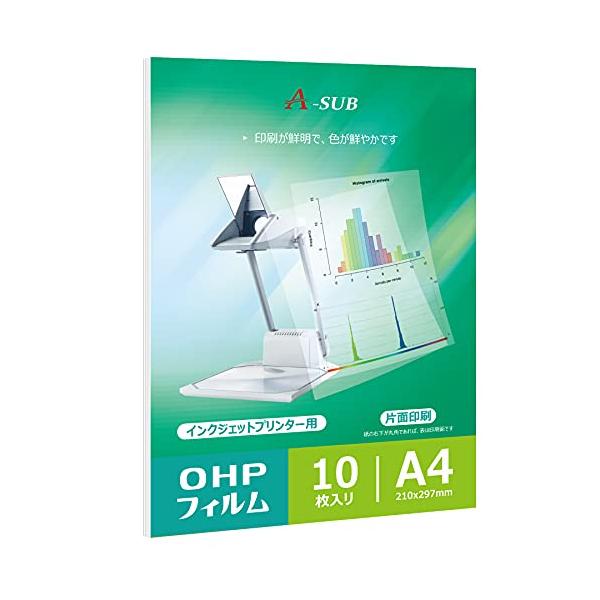 A-SUB OHPフィルム 透明 インクジェット用 コピー用 10枚 A4 手書き ノーカット オーバーヘッドプロジェクター用