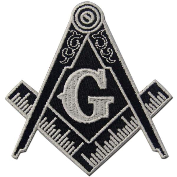 フリーメーソンのロゴ刺繍入りアイロン貼り付け/縫い付けワッペン,黒と白