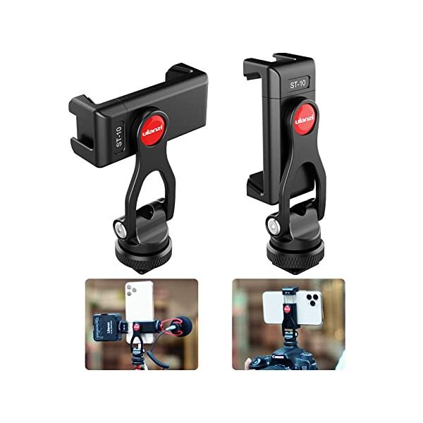 ULANZI 三脚スマホホルダー スマートフォン三脚マウント 360度回転 角度調整 コールドシューマウント 垂直ブラケット カメラスマホモニタ
