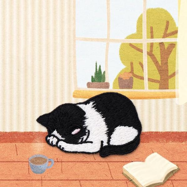 刺繍アイロンワッペン かわいい 猫 衣類バッグ (黒い猫)