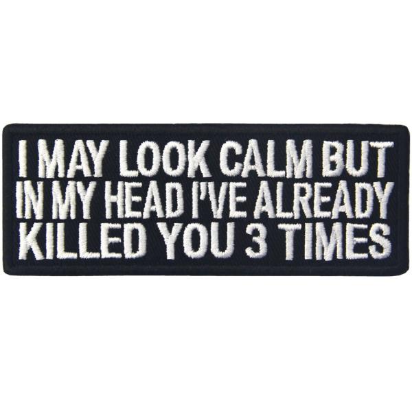 I May Look Clam 落ち着いて見えても、頭の中ではお前をすでに3回殺している刺繍入りアイロン貼り付け/縫い付けワッペン