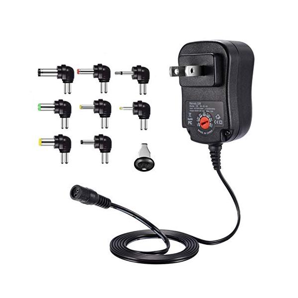 ・入力:100V-240V。出力:3V、4.5V、5V、6V、7.5V、9V、12V 1000mA 1A最大。消費電力:12W(最大)。 付のキーで簡単に電圧を設定できます。
