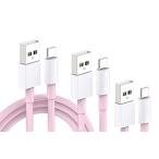iPhone 充電ケーブル アイフォン ケーブル ピンク 0.25m 1.2m 2m 3本セット 3本とも留め具付き ライトニング ケーブル USB コード ソフトシリコーンゴム 急速充電 データ伝送 耐久性高い 純正 断線しにくい 手触り良い iPhone本体のカラーにピッタリ キュートな色合い かわいい ライラック Pink