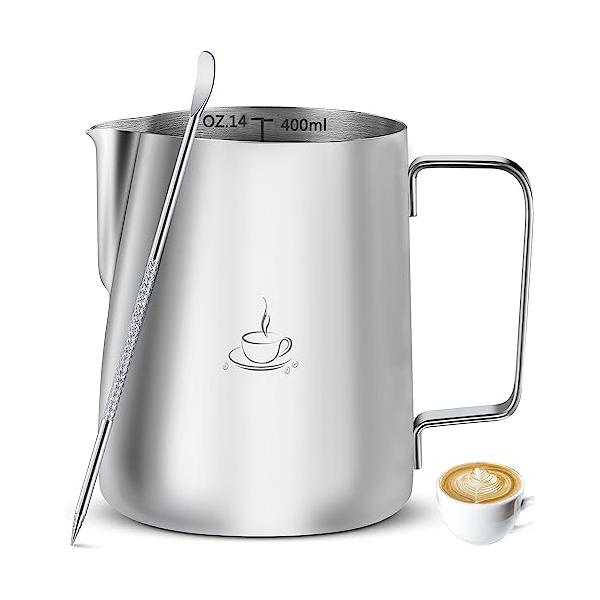 ・材質: ミルクジャグは非常に頑丈高品質の良い18 / 8ステンレスで作られ、それには汚れがあり、錆びを防ぐこともあります。 泡立ち抜群の高品質ステンレス製ミルクピッチャーです。牛乳の泡立て、ラテアートなどに最適です。