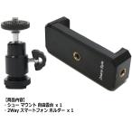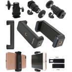 ・ホットシュー取り付け可能 ボールヘッド シュー マウント 対応アダプタ 自由雲台 と ボールヘッドに装着可能なスマートフォン ホルダーのセット商品です。iPhone やアンドロイド機種などのスマホを一眼レフ・ミラーレス デジタルカメラのホット シューに取り付けて撮影を行うことが出来ます。スマホで動画を撮りながら一眼レフやミラーレス デジカメでの撮影をしたり、WIFI搭載の一眼レフでは撮影した画像や映像をスマホでその場でチェックしたりトリミング編集したりする事も出来るようになります。