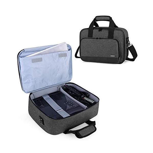 - 【収納力】1つのメイン室(仕切りパッド付き)と5つのポケットがあって、プロジェクターに限らず、15.6インチのラップトップ、HDMIケーブル、AVケーブル、リモートコントロールなどを収納することができます。【保護】丈夫なナイロン外装で、内部に厚めのクッション材と固定用ゴムバンドがあって、大切なプロジェクターとアクセサリーを保護します。15.6インチのラップトップ用のスリーブ(38.7cmx 28cm)もあります。【持ち運びやすい】クッション材付きの持ち手、取り外し可能なショルダーストラップとキャリーのハンドルを通せる背面ベルトも付いています。【便利】大きく開くタイプで、プロジェクターの取り出しはとても便利です。【寸法】40.6cm x 29.2cm x 14.6cm、プロジェクター入れ:39.4cm x 28cm x 13.5cm、購入前にプロジェクターの寸法をお確かめ下さい。