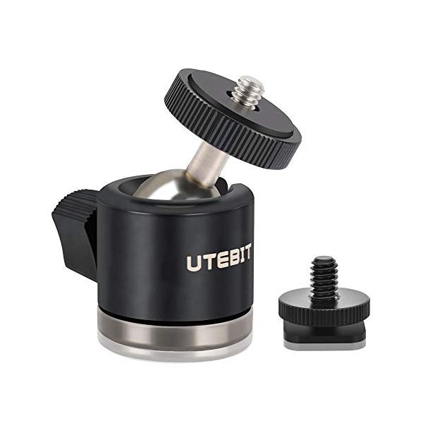 UTEBIT 自由雲台 360度 回転可能 ボールヘッド雲台 直径20mm 小型雲台 1/4 ネジ ネジ付シュー ベース ライトスタンド パノラ