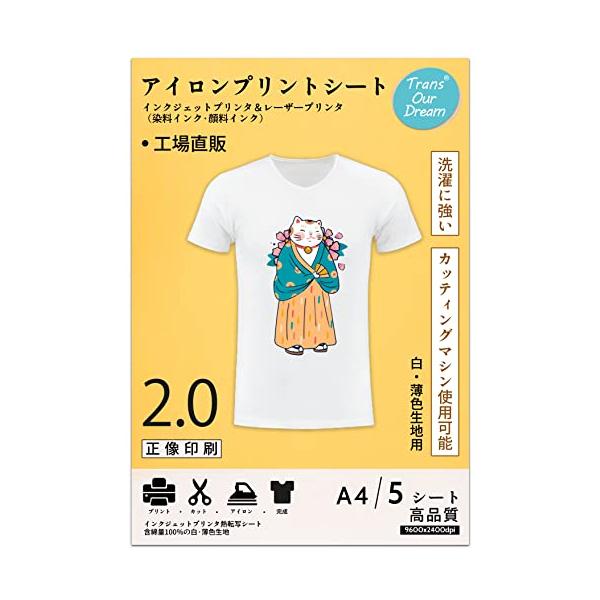 TransOurDream 真正の転写シート アイロンプリントシート2.0 正像印刷 白・薄色生地用 A4 5枚Tシャツ熱転写シート 洗濯に強い