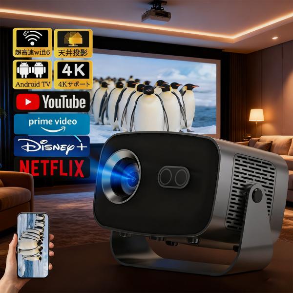 プロジェクター 小型 家庭用 天井投影 高画質 電動フォーカス android搭載 4K対応 映像機器 26000LM高輝度 ホームシアター Android13 静音 自動台形補正 明る 壁
