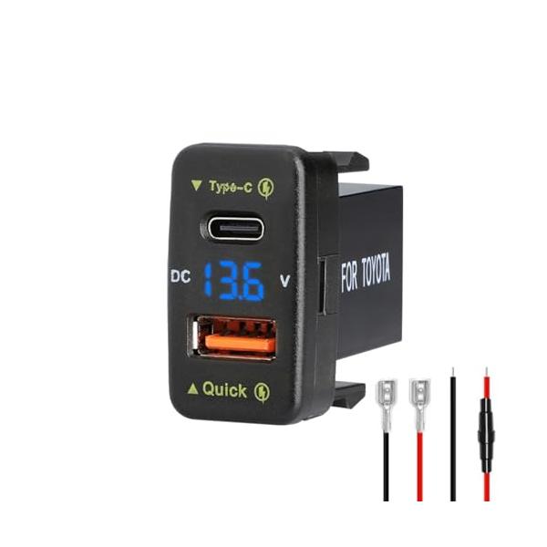 Levigo カーチャジャーUSB PD+QC3.0 急速充電 トヨタ車向け 電源ソケット 2ポート付き スイッチホール LED電圧計表示 12