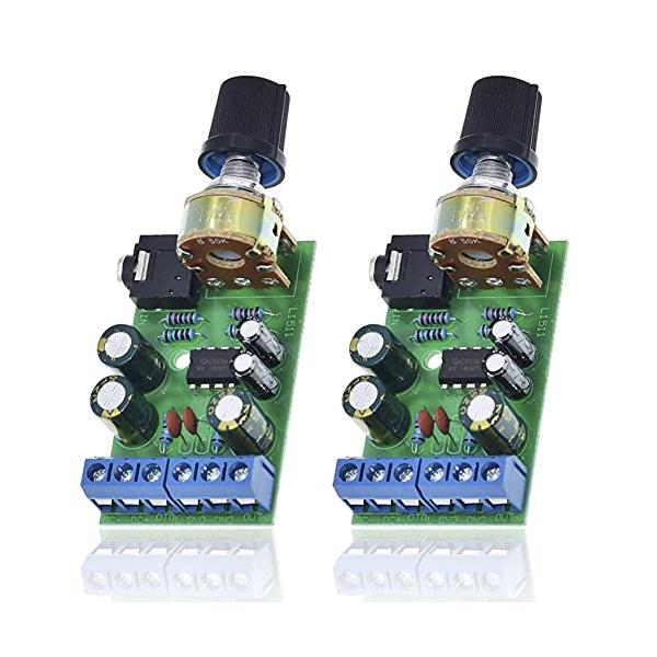 - パラメータ:電圧:DC2〜12V、出力電力:0.2W〜5W、4〜32オーム、出力チャンネル:2チャンネル、サイズ:52x32x23mm。 パワーアンプモジュール:端子台はドライバーでのみ配線でき、はんだごてでは配線できません。回路はシンプルで、音質は良く、電圧範囲は広いです。 アンプボード:小型で強力、ノイズフリー、ポータブル製品です。高性能ICボードを使用することにより、配線性能を向上させることができます。 チャンネルステレオ:ボリュームコントロールポテンショメータにより、ユーザーはボリュームを調整でき、操作も簡単です。 パッケージ内容:2xTDA2822MDC2-12V2チャンネルステレオアンプミニAUXオーディオアンプボードモジュール。