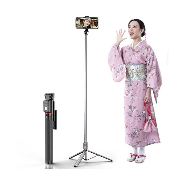 スマホ 三脚 卓上三脚・ミニ三脚 自撮り棒 iphone スマホスタンド設計強化180cm撮影 150cm以上 セルカ棒 360°回転 軽量 卓