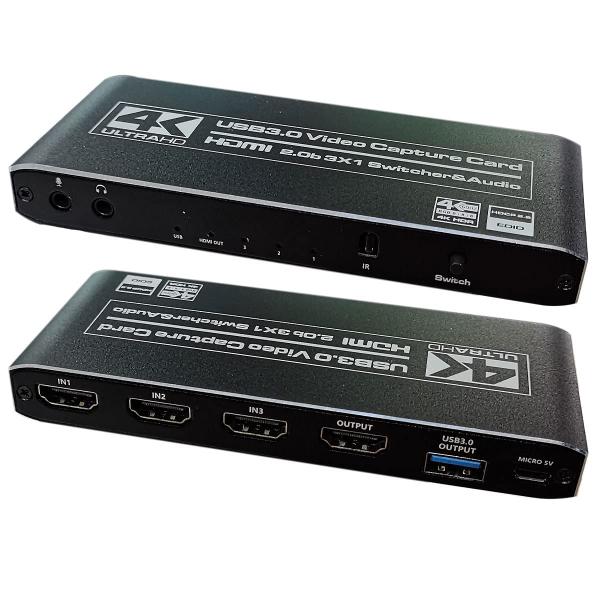 HDMI切替器 HDMIキャプチャー HDMI2.0 HDCP2.2 4K60HZ HDR USB3.0対応 3入力2出力 4K60HZパススルー出力