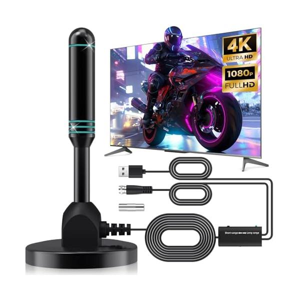 Lerulmy 2026新登場-改良モデル 室内アンテナ テレビアンテナ 4K対応 無料視聴 360度回転 高感度 全種類対応 VHF UHF