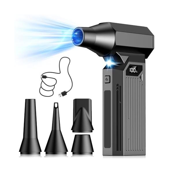 エアダスター 電動エアダスター 最強力ブロワー【超強力暴風・ 吹くだけで完全清掃 ・ LEDライト】300000RPM高速回転 最大風速120m
