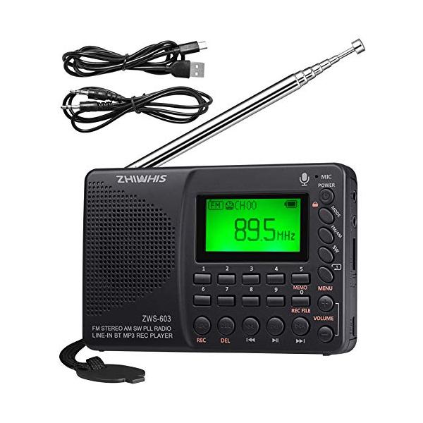 ZHIWHIS FM/AM/SW ラジオ レコーダー MP3プレーヤー ポータブル 充電式 大容量リチウム電池 LCD画面 立體聲 スリープ機能