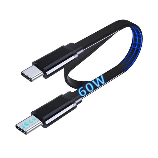 UNIDOPRO 平らな USB-C to USB-C PD 60W 3A 急速充電データ同期コード Type C ケーブル [10mm延長ロングコネ