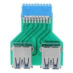 商品名:CableccデュアルUSB3.0Aタイプメス-マザーボード20/19ピンボックスヘッダースロットアダプターPCBA…